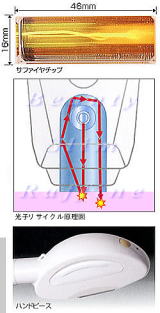 照射面が大きく(46mmX16mm)、その範囲の毛に一度に照射するのでレーザーよりさらに早く処理ができる。両脇照射はわずか5分です。